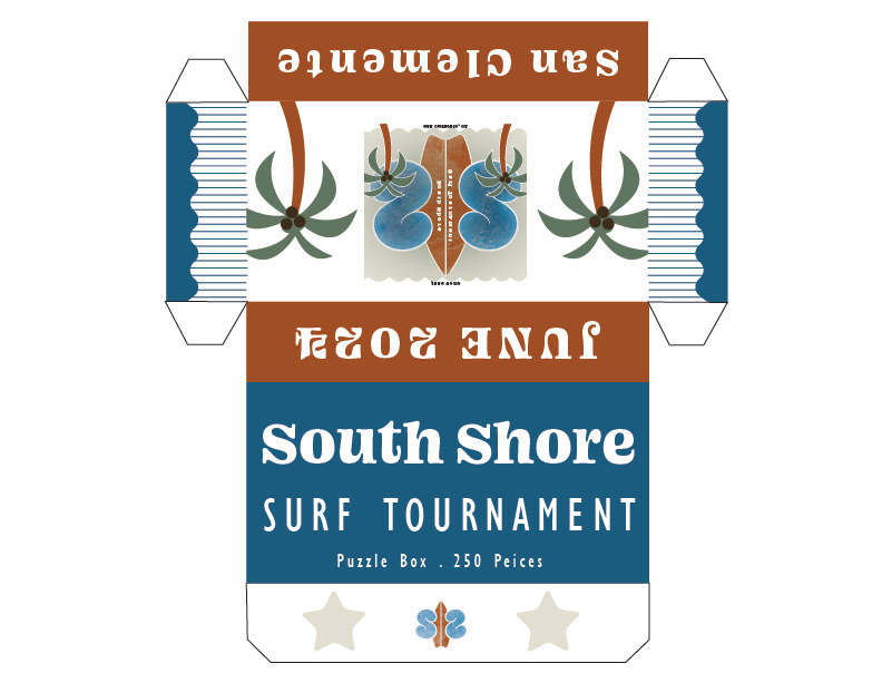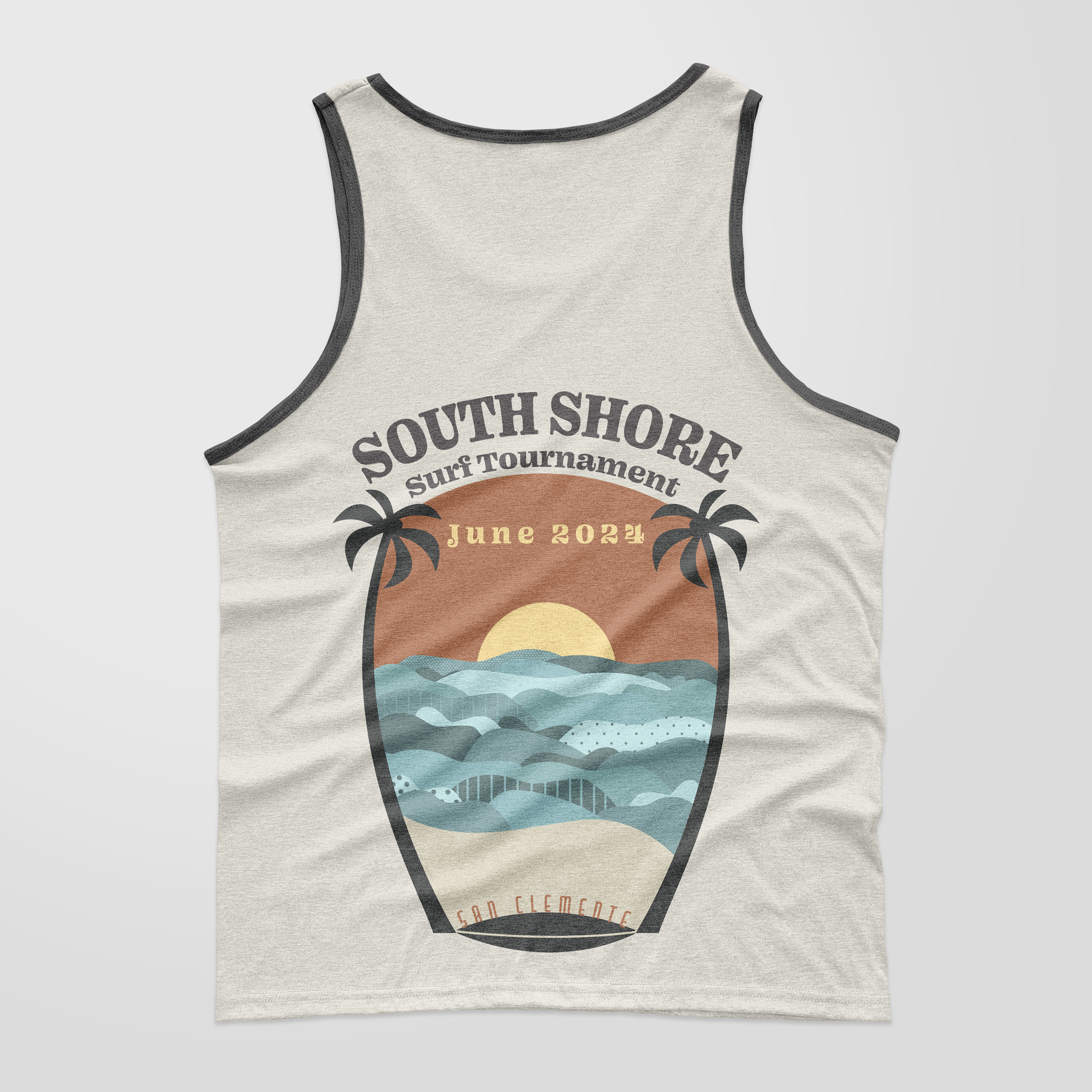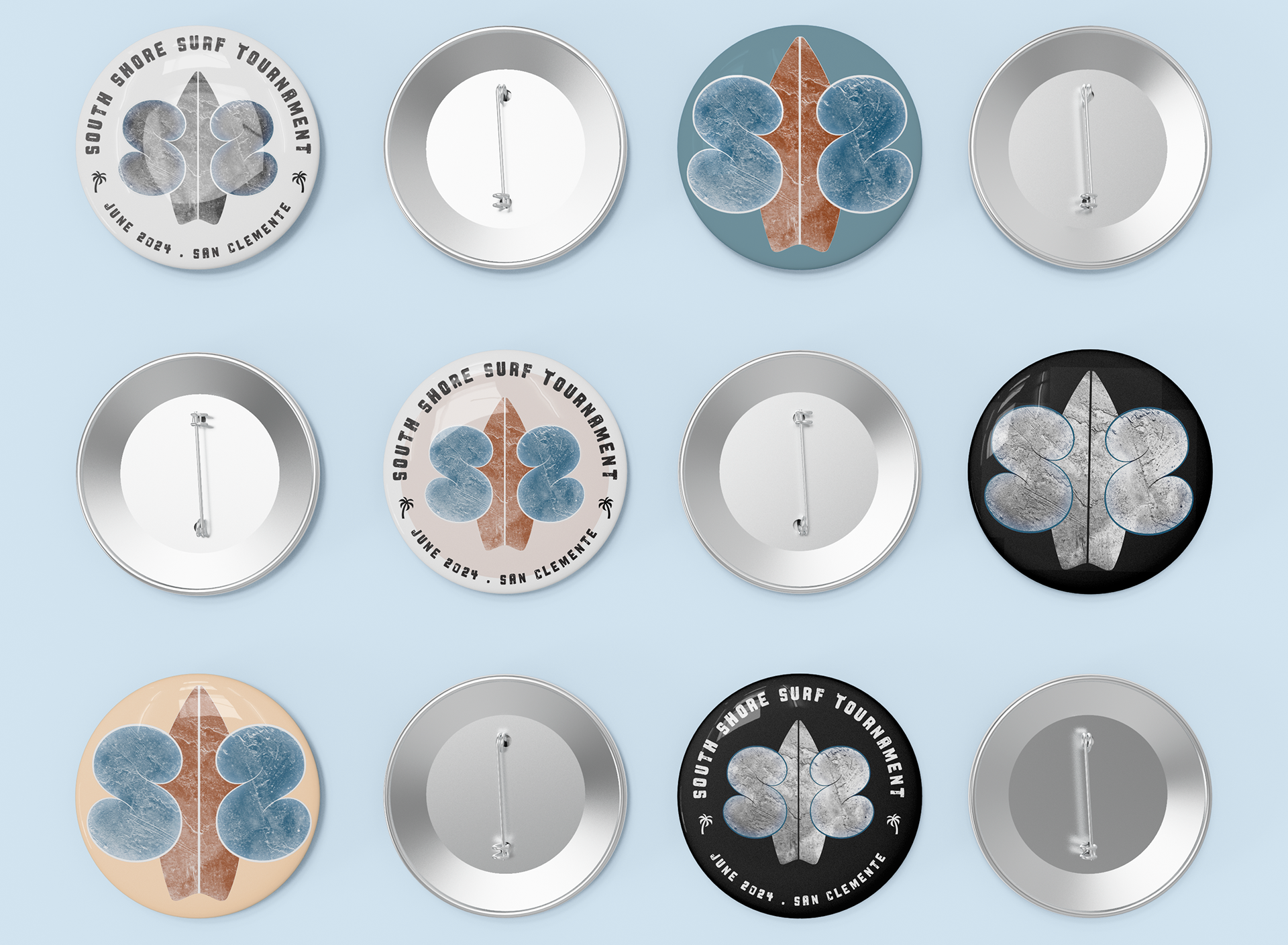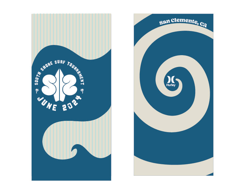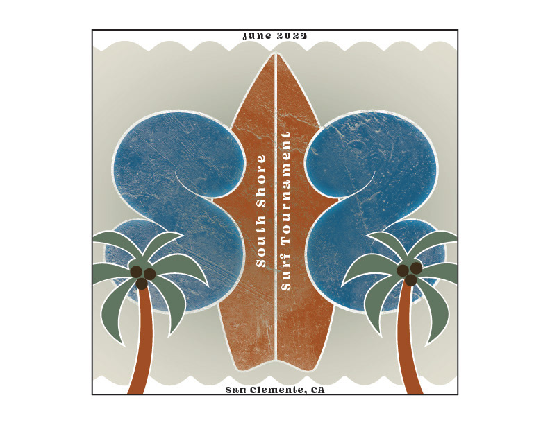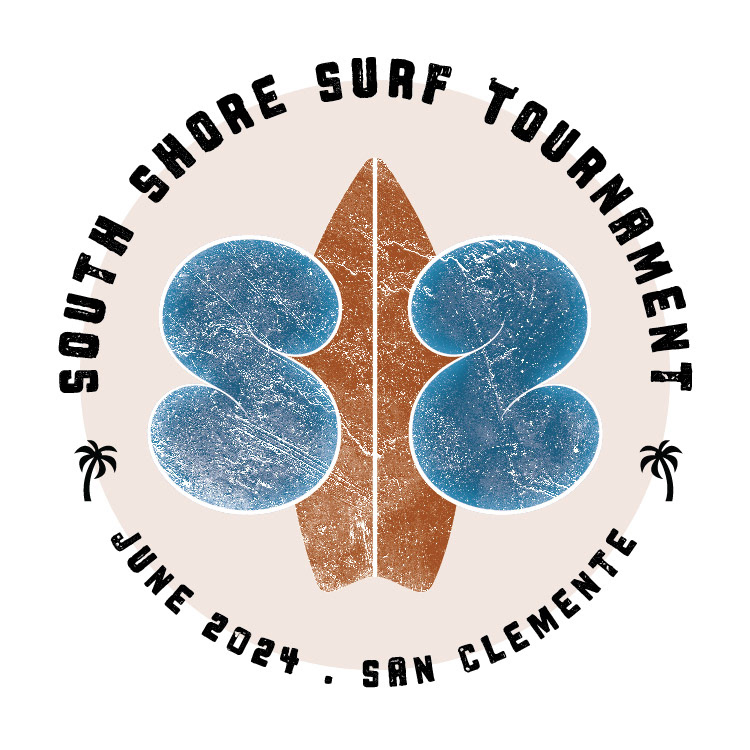 Welcome to the event emblem and souvenir product design for the 2024 South Shore Surf Tournament in San Clemente, CA.
